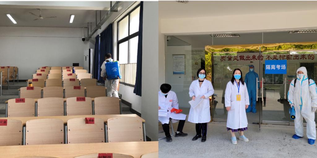 学校切实履行常态化疫情防控要求,在每天考试结束后对考场及设施设备进行全面消毒,切实保障考生及全校师生安全,筑牢疫情防控防线。