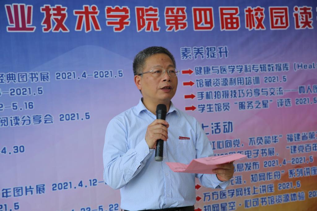 启动式伊始,陈贞健致辞,他指出近年来党中央、国务院高度重视全民阅读,今年又恰逢中国共产党百年华诞,图书馆充分发挥自身优势和文化特色,将党史学习教育与阅读推广相结合,通过形式多样的阅读推广和文化交流活动,向广大师生展示中国共产党的百年光辉历程,引导红色阅读,厚植文化自信,增强使命担当。希望广大师生能以此为契机,养成“爱读书、多读书、读好书”的习惯,厚植“爱国、爱党、爱校”情怀,珍惜宝贵时光,勤奋学习,力争在开拓新征程中实现新作为。