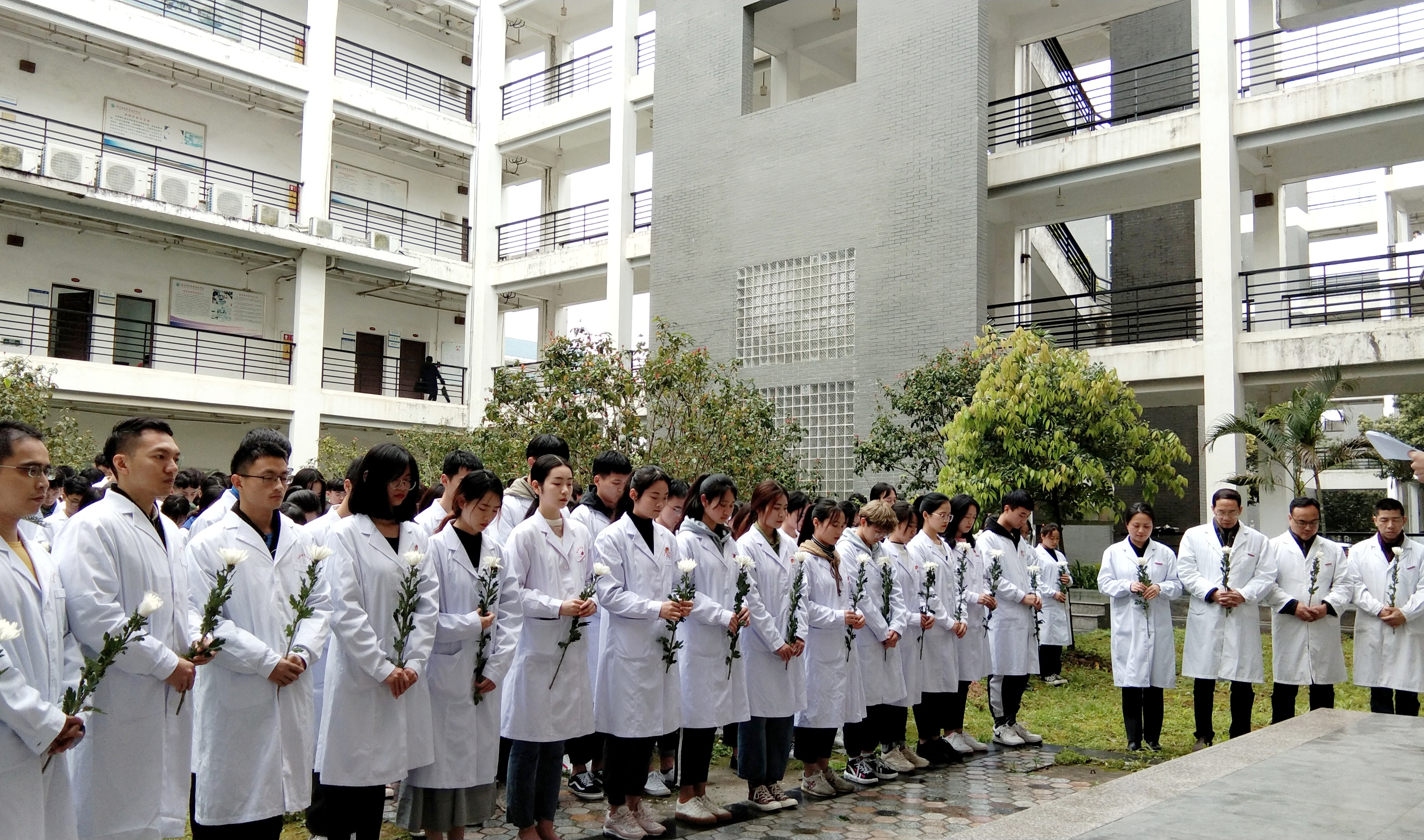 4月3日,时值清明之际,临床医学系于基础部一楼举办向大体老师致敬活动,系部领导、辅导员及学生代表近百人参加本次活动。