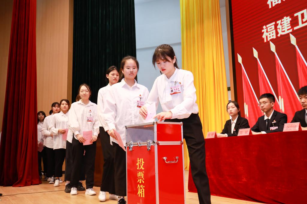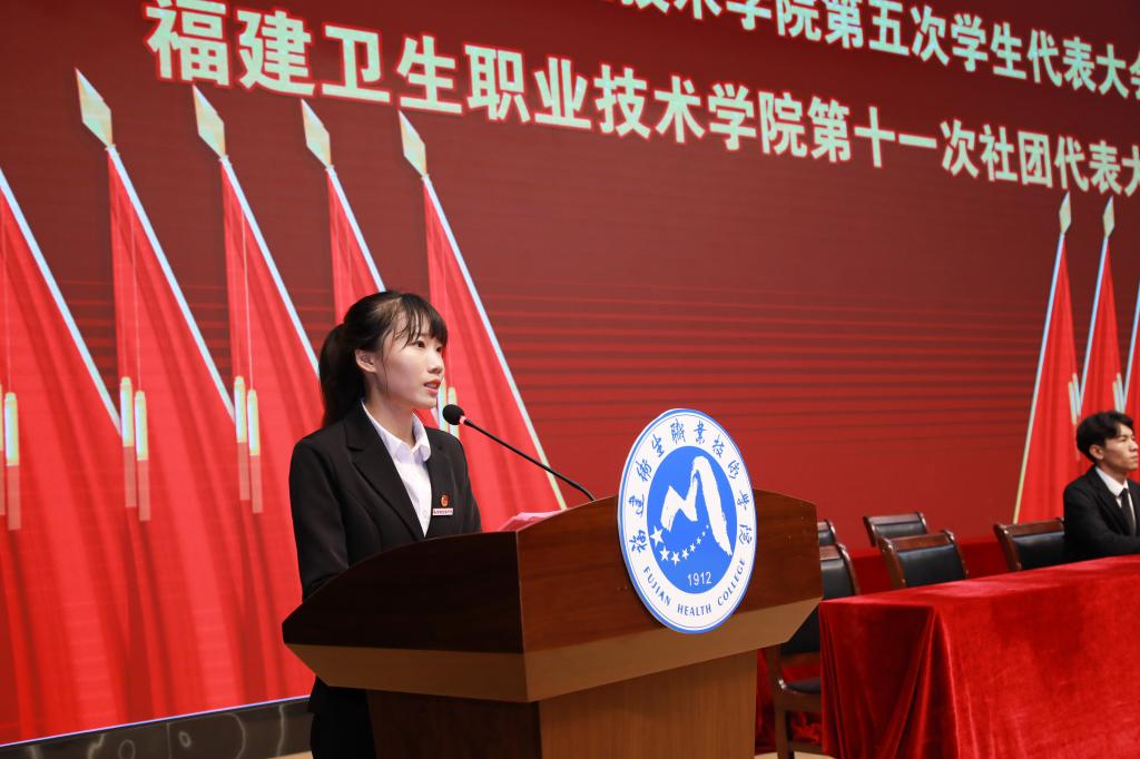 石瑜婷致闭幕词。她表示本次大会的规范召开落实了高校学生会和学生社团改革制度,客观全面地总结了学校一年以来学生会和学生社团工作所取得的主要成绩和基本经验,明确提出了今后一年工作思路和主要任务。她勉励闽卫院学子肩负历史使命,坚定前进信心,立大志、明大德、成大才、担大任,努力成为堪当民族复兴重任的时代新人。