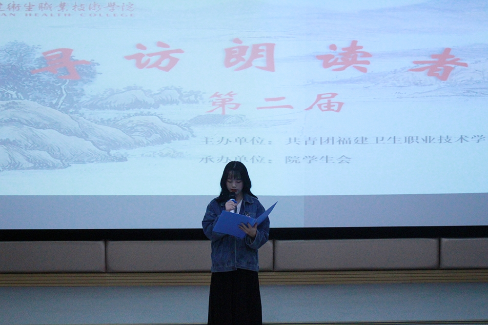 经过初赛层层选拔,共有11位选手进入决赛,比赛现场以推荐人介绍的形式展开,选手们现场演绎了《秋来之后》、《白鹿原》等中外优秀文学作品,声情并茂的朗诵以及富有韵味和表现力,数次让在场观众产生共鸣,发出阵阵掌声。在经过激烈的角逐后,共有5名选手脱颖而出,荣获“最优朗读者”称号,他们分别是18药学304班魏雨馨、18口腔303班胡斌斌、17护理307班马钰鑫、18口腔301班白静雯、18临床301班周天阳。同时,他们将获得由院学生会广播电台制作的线上节目“遇见朗读者”的特辑推送。