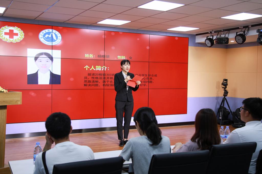 红十字会学生分会成员宣读大会选举方法,全体代表通过举手表决,审议通过会长选举办法,监票计票人名单和学生分会会长候选人。候选人的竞选演讲之后,会员代表经过深思熟虑,慎重地投出自己神圣的一票,有序的将选票投入选票箱内。杨晓银同学成功当选第一届红十字会学生分会会长。