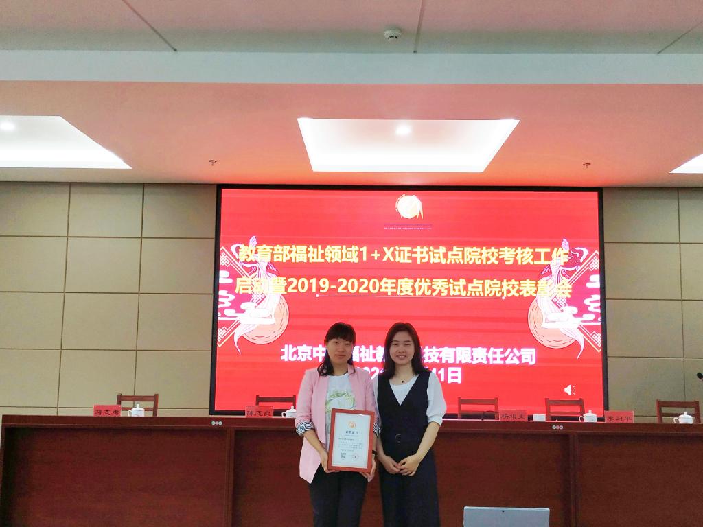 5月11日,教育部福祉领域1+X证书试点院校考核工作启动暨2019-2020年度优秀试点院校表彰会在湖南岳阳举办,我校医学系康复治疗技术专业负责人郭洁梅、康复教研室主任郑松作为代表参会。