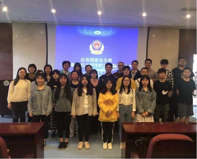 讲座中,何涛警长首先对总体国家安全观作了简要概述,结合叙利亚内战等丰富案例,生动地介绍了国家安全与公民人身安全息息相关、我国高度重视国家安全及公民安全利益等内容。随后,何警长从我国外部安全总体形势、我国国内政治安全总体形势两方面分析了现阶段我国国家安全的总体形势,特别对高校领域可能会出现的几个突出问题进行详细介绍。最后,何警长对当代大学生树立正确的国家安全观提出了五点建议:一要坚定理想信念;二要注重个人言行;三要增强是非观念;四要保障自身安全;五要自觉履行义务。