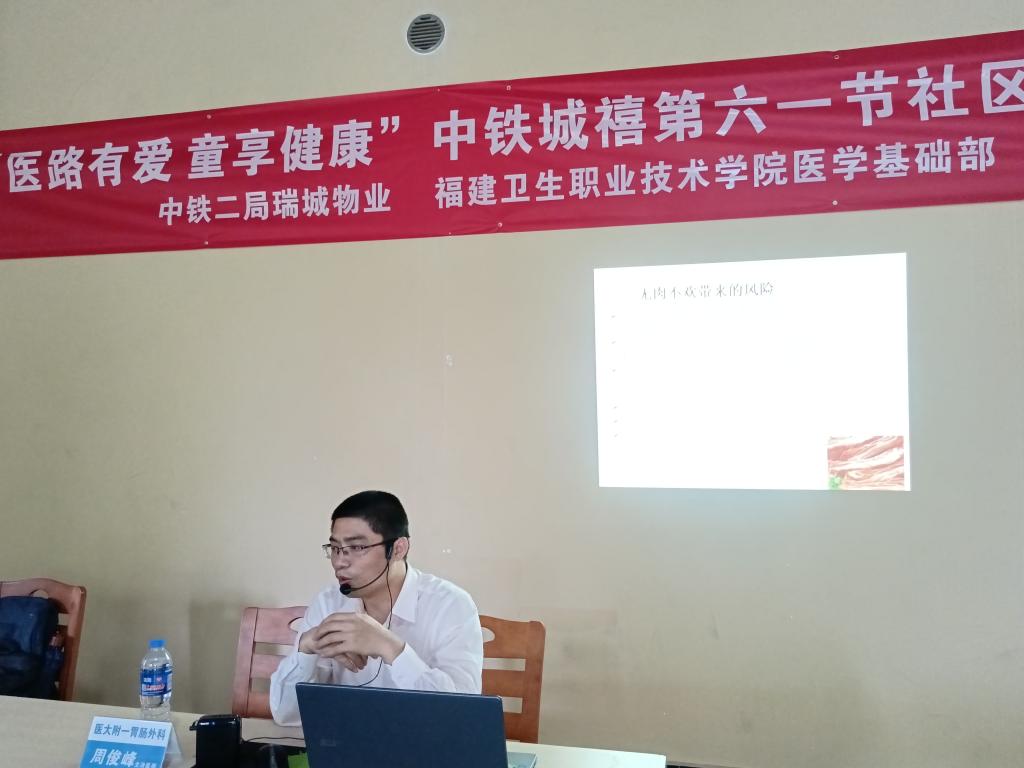 国际“六一”儿童节前夕,为践行健康中国行动,关爱儿童健康,2021年5月29日上午,医学基础部联合护理学院、福建医科大学附属第一医院共同在闽侯荆溪社区中铁城举办了“医路有爱,童享健康”健康知识进社区活动,该活动也是2021年我校科技周与职业教育周系列活动之一。