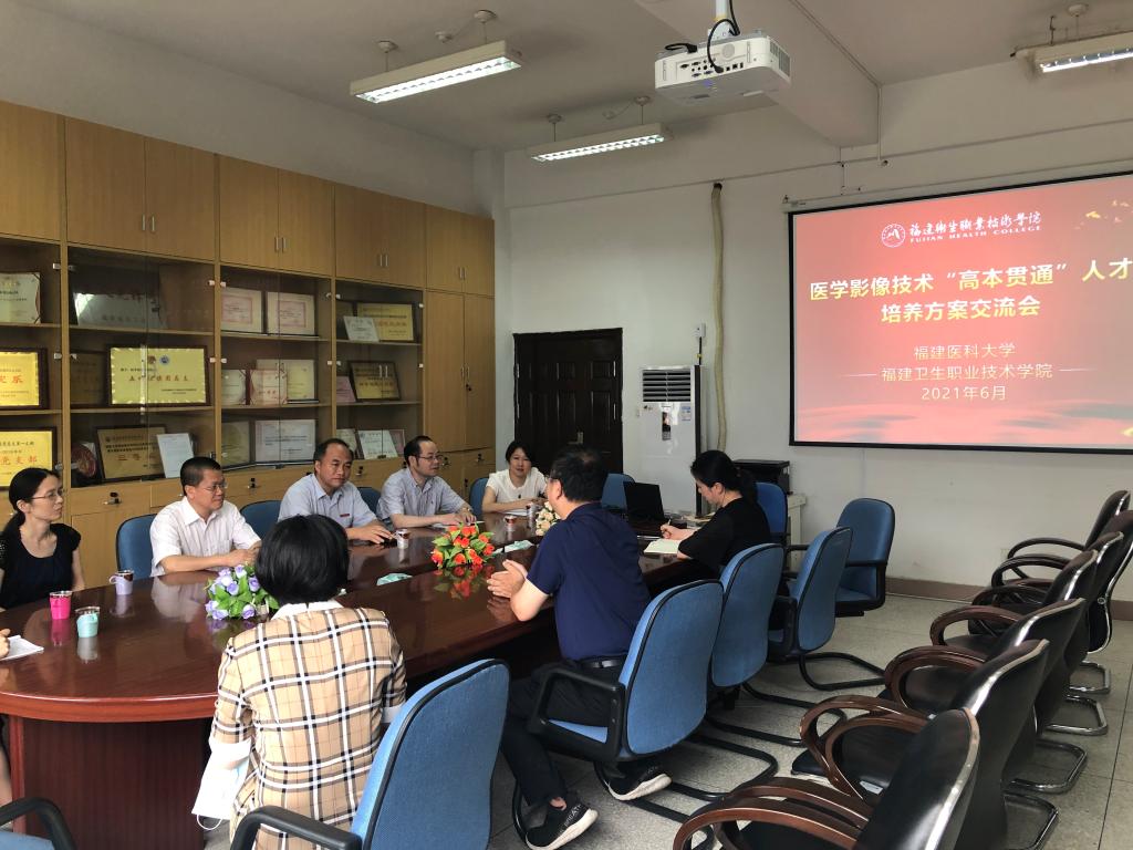 6月4日下午,福建医科大学医学影像学系曹代荣副主任、李跃明、李坚、刘颖、洪珊妮、曾峥一行6人来我校,就医学影像技术专业“高本贯通”人才培养方案开展调研交流。院长许能锋、教务处处长朱扶蓉、医学技术系党总支书记陈俊颖、系主任翁绳和、系副主任魏碧娜等参加了交流活动。