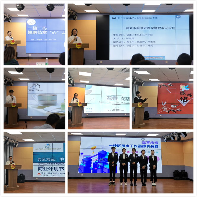 为全面落实习近平总书记给中国“互联网+”大学生创新创业大赛“青年红色筑梦之旅”大学生回信重要精神,响应李克强总理“大众创业,万众创新”的号召,推进我校创新创业教育改革,提升和拓展我校创新创业教育特色和优势,2021年6月23日,由我校教务处、团委、学生工作部主办,创新创业教育中心与健康管理系团总支学生会承办的2021年福建卫生职业技术学院“互联网+”大学生创新创业大赛在学校青年之家多功能厅举办。