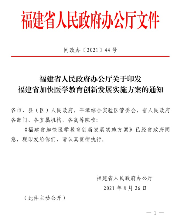 福建省加快医学教育创新发展实施方案