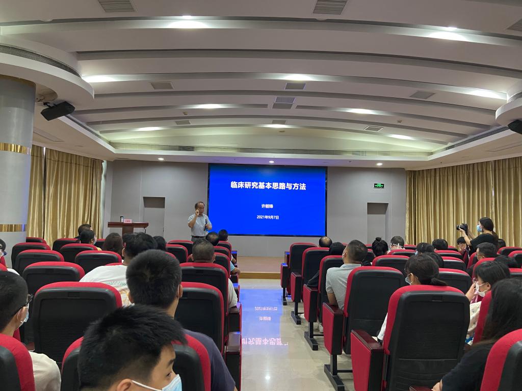 在邵武市立医院,许能锋致辞中表示校院合作办学、医教协同,对学校和医院资源进行有效整合,拓展了办学空间,提高了人才的质量培养。他对首届与邵武市立医院的校院合作班表示祝贺,对医院领导及指导老师表示感谢。同时,希望同学们珍惜机会、虚心求教,注重实践、知行合一,努力成为一名优秀的医学生。随后,邵武市立医院党委书记肖银生对我院一行表示欢迎,他介绍了医院悠久的办院历史以及丰硕的教学成果,并感谢学校的信任,用心教学、培育学生。许能锋现场作题为“临床研究基本思路与方法”的精彩讲座,随后参观了学生宿舍。