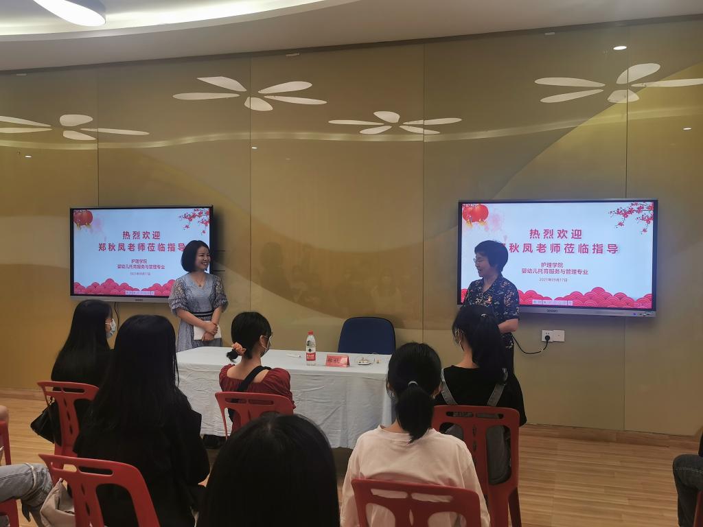 2021年9月17日下午,我校护理学院邀请福建贝悠童教育咨询有限公司执行董事郑秋凤女士开展《懂早教发展,看托育未来》专题讲座。本次讲座由护理学院党总支书记谢涛主持,托育服务与管理专业全体师生有幸聆听了此次讲座。