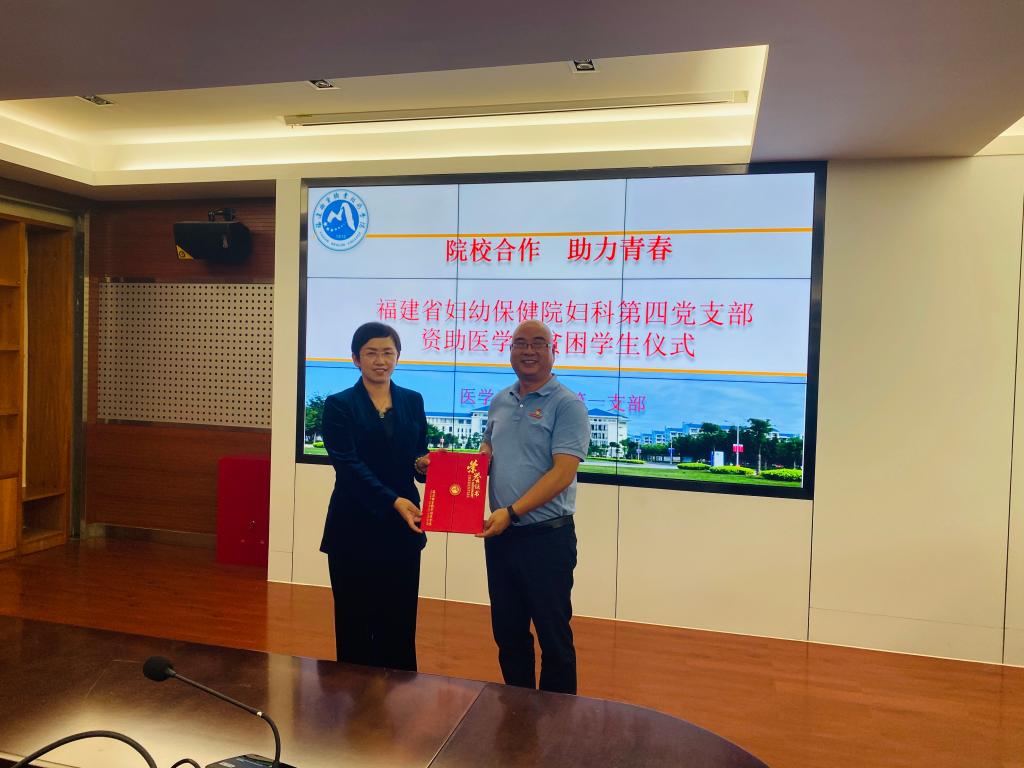 活动初始,邱滚忠对福建省妇幼保健院妇科第四党支部再次资助我系贫困生表达了感谢,介绍了上一年度受资助学生的学习、生活情况,并诚挚希望今后能在专业建设、学生实习方面给予系部更多的帮助与指导,促进专业的建设与发展,为基层培养输送更多优秀的卫生人才。