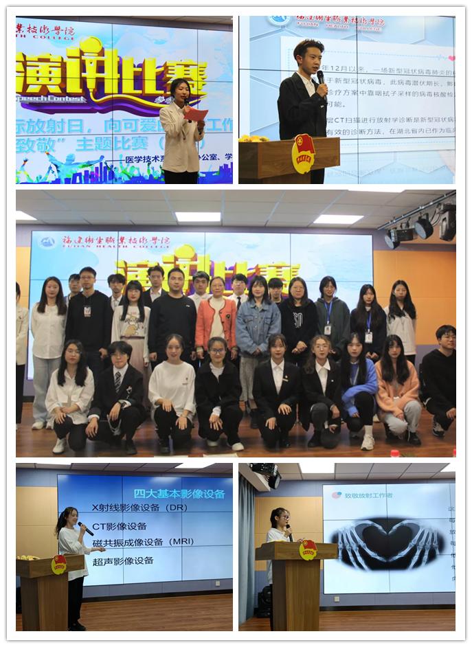 主题演讲,争做卓越影像人。11月8日,同学们紧扣“国际放射日,向可爱的放射工作者致敬”主题,结合专业学习和实践,讲述影像发展历程、影像人典型榜样、影像人坚守抗疫一线等故事,表达了对于成为优秀影像人才的志向,展现了学子们向上的蓬勃朝气。