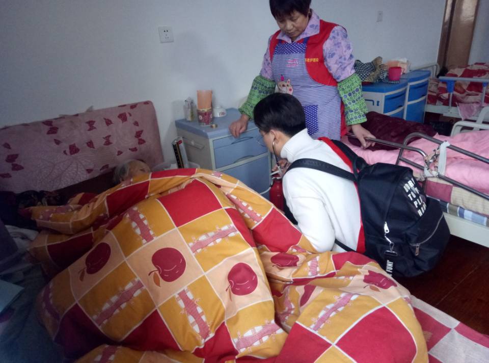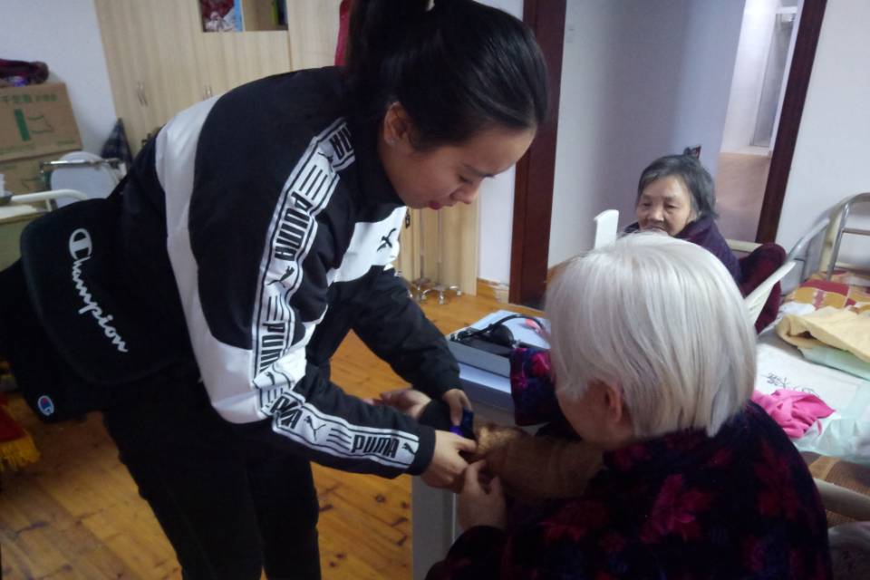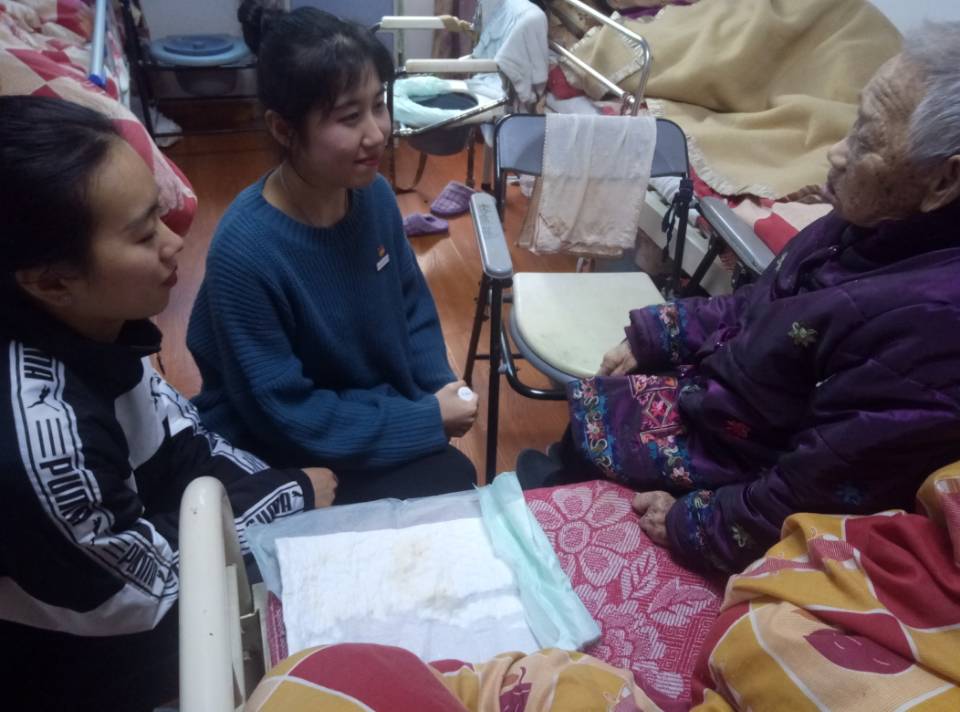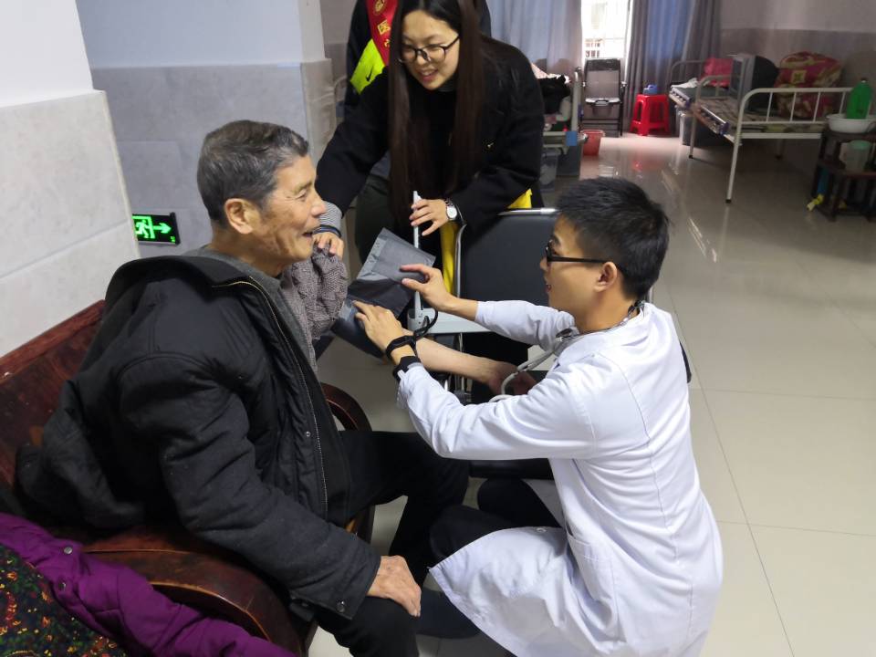 志愿者们为老人送上一碗热腾腾的拗九粥,陪老人聊天、为老人量血压,一句简短的对话,一个肯定的眼神,都为老人们营造了温馨、和谐的氛围,都彰显了师生们对中华民族“尊老、爱老、护老、敬老”传统美德的传承。