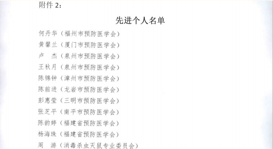 近日,福建省预防医学会发布表彰决定,我校李宏老师荣获2021年福建省预防医学会“先进个人”荣誉称号。