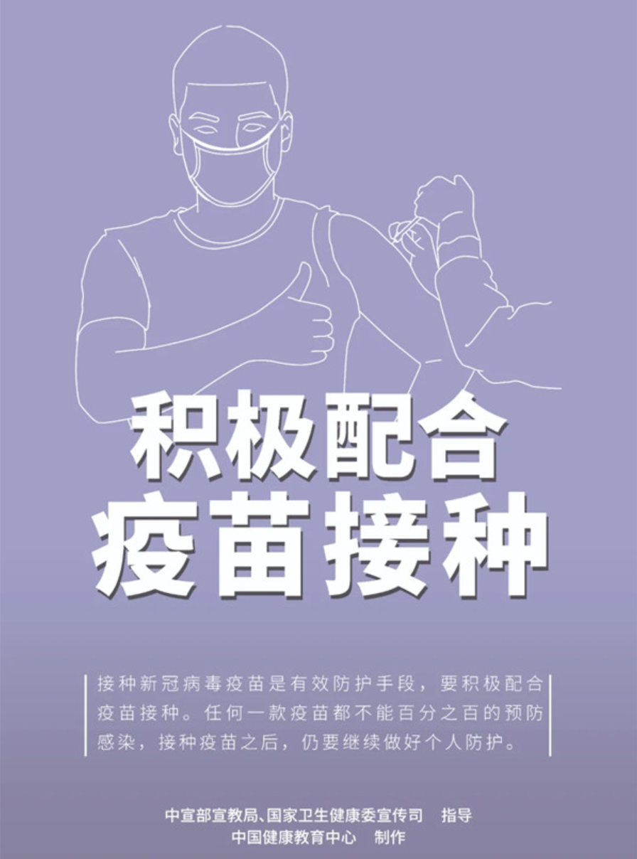 接种新冠病毒疫苗是预防新冠病毒最安全、最经济有效的措施,符合条件的同学应积极参与校内组织的疫苗接种,实习生应主动到接种点接种,特别强调应及时接种加强针(第三针),接种疫苗后仍需注意个人防护。