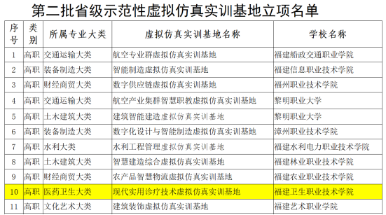 我校医学院邓元荣老师主持申报的《现代实用诊疗技术虚拟仿真实训基地》项目获得“第二批省级示范性虚拟仿真实训基地”立项;药学院朱扶蓉老师主持申报的《药学专业群教学资源库》项目获得“第六批省级职业教育专业教学资源库”立项;医学院林晋老师主持申报的《病理学与病理生理学》、健康管理系唐青老师主持申报的《医学信息技术基础》和护理学院吴明老师主持申报的《成人护理-外科护理》3个项目获得“第六批省级职业教育精品在线开放课程”立项。