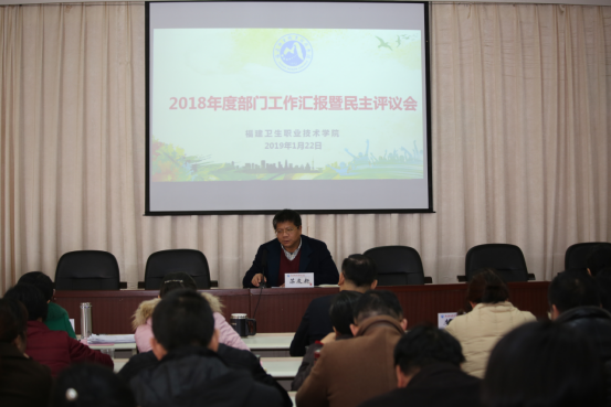 为总结一年以来各部门的工作成效,促进学院各项工作更加规范,更加有序,更加高效,学院于1月22日上午在行政楼六楼召开了2018年度部门工作汇报暨民主评议会。学院领导曾武祈、苏友新、李美华、黄铭珊、郑翠红出席会议,全体中层干部和教师代表共60余人参加了会议。