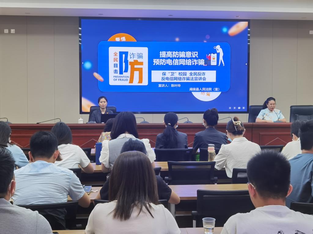 此次培训由闽侯县人民法院陈叶玲担任宣讲人,她围绕电信网络诈骗的定义、电信诈骗常见套路、电信网络诈骗相关犯罪、反电信网络诈骗法四个方面,通过案例分析,以通俗易懂的语言讲解了常见诈骗案件的特点和犯罪分子的惯用手法、作案方式、识别和防范技巧。