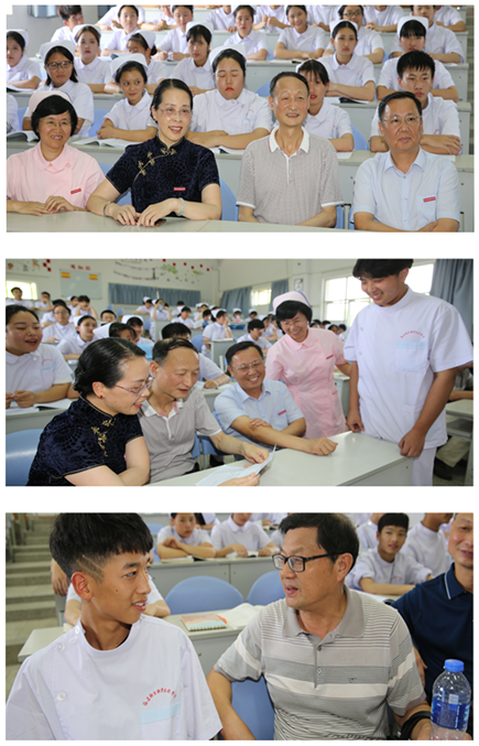 为全面深入了解17护理中职班学生新学期特别是近期的思想、学习和生活状况以及存在的困难,准确把握学生的思想动态和学情发展,5月24日,护理系在系部会议室和系部二阶教室分别召开了学生干部座谈会和学生交流会。南平市扶贫开发协会会长柳贵清、副会长兼秘书长王金清、副会长林孝萍一行来访,并与同学们亲切交流。院党委书记曾武祈、副院长郑翠红、护理系党总支书记谢涛、护理系副主任龚海蓉、护理系党总支副书记林桂松和中职班辅导员张天文、班导师吴美丹老师共同出席了本次交流会。会议由谢涛书记主持。
