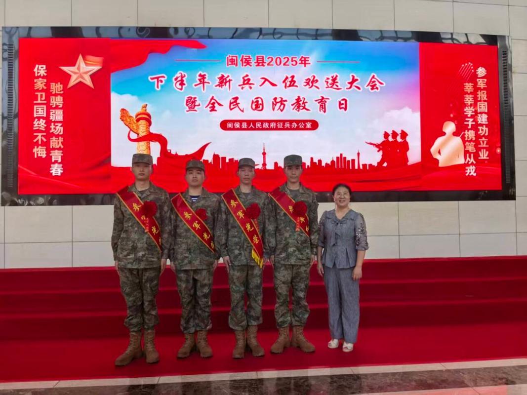 风华正茂抒壮志,一身戎装踏征程。9月15日,闽侯县人民武装部在县科技中心大会场举行2025年闽侯县秋季新兵入伍欢送大会,我校受邀参加。