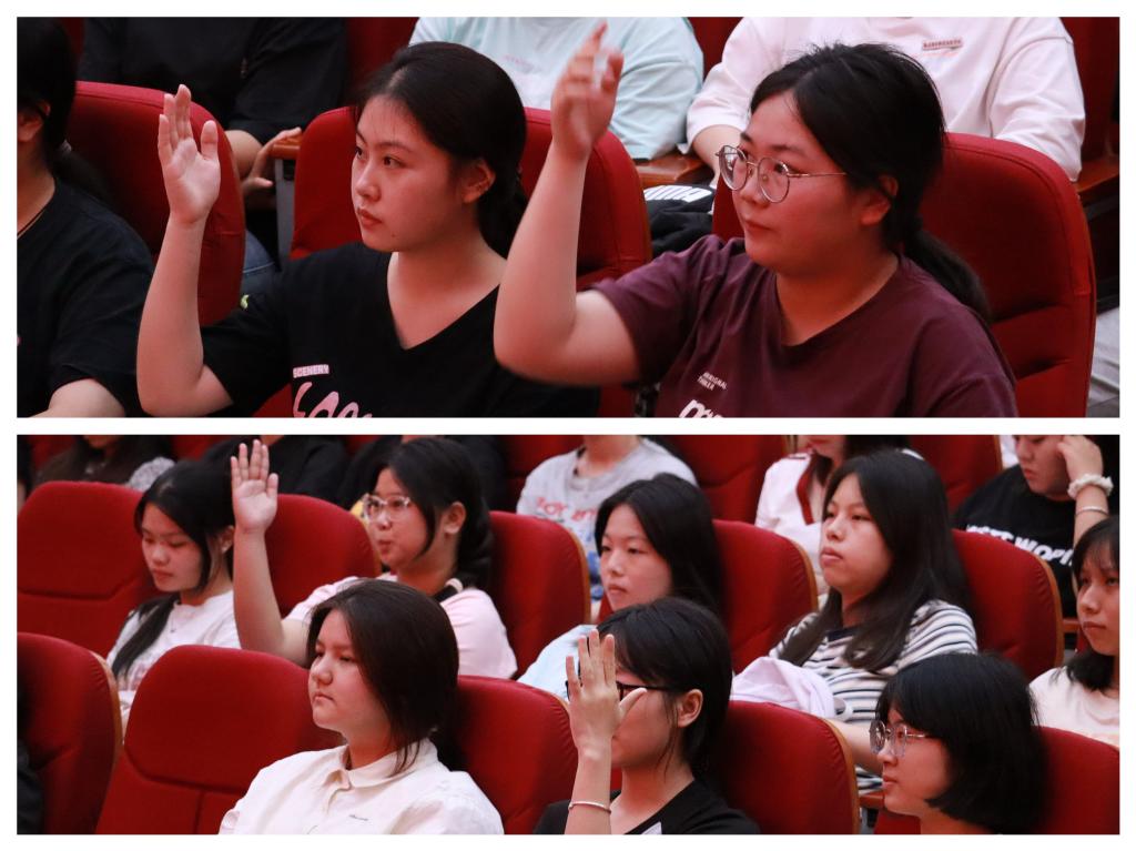 为了加深大家对本期谍战题材舞剧《永不消逝的电波》的理解,传承红色基因,弘扬爱国主义精神,活动从展播节目中选取了几个有关的知识点,设置了问答环节,增强与观众的互动,调动现场气氛。同学们积极举手参与,侃侃而谈。答对的同学获得了图书馆精心准备的文创纪念品。