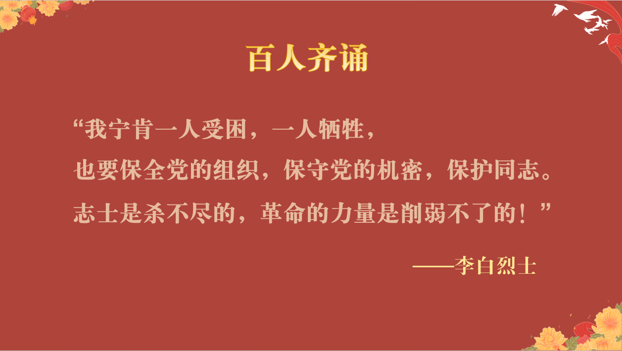 活动尾声,主持人领读李白烈士的经典名言。同学们在齐声朗诵中,深切感受革命先辈不只存在于泛黄的历史书卷中,他们也曾真实地活着,爱着,战斗着。