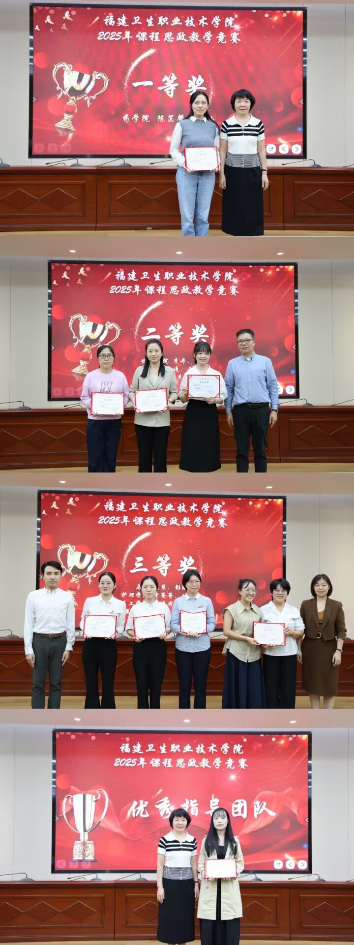 颁奖仪式上,校党委副书记李美华对本次竞赛作总结发言。她表示,学校教师要始终牢记立德树人的初心使命,将思想政治教育深度融入教育教学各个环节,以高度的责任感和饱满的育人热情投身教育事业,潜心钻研教学,悉心关爱学生,做到全程育人、全方位育人。
