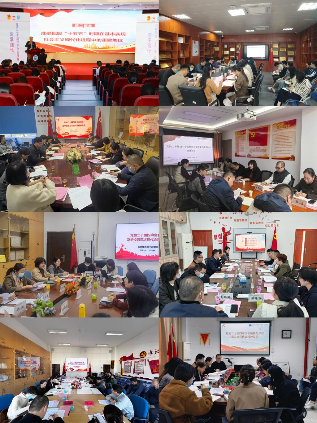 党委副书记李美华、纪委书记林玲、副校长黄铭珊、周雄、朱扶蓉,分别围绕党的二十届四中全会核心要义进行系统阐释,并深入介绍了学校第三次党代会提出的战略任务。强调,要切实增强贯彻落实全会精神的政治自觉、思想自觉、行动自觉,立足学院发展实际科学谋划“十五五”时期规划,将全会精神与学校党代会精神精准转化为推动各二级学院高质量发展的具体行动,确保会议精神落地生根。要以学校第三次党代会胜利闭幕为契机,进一步统一思想,凝聚共识,以高质量教育助力教育强国、教育强省建设,为“健康中国”“健康福建”建设贡献校地协同发展力量。