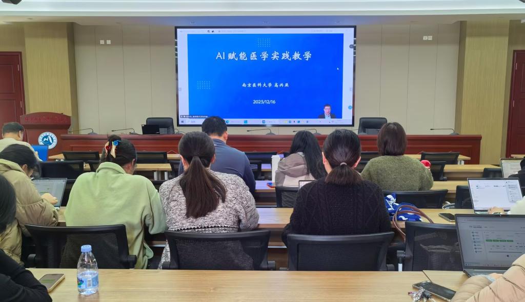 本次讲座主题为“AI赋能医学实践教学”,由南京医科大学二级教授、国家级虚拟仿真实验教学中心主任高兴亚教授担任主讲。高兴亚结合医学教育特点,系统阐述了人工智能技术在实践教学中的前沿应用与发展趋势,分享了智能技术在模拟实训、技能评价、学习分析等方面的具体案例与实施路径,为我校医学实践教学数字化、智能化转型提供了宝贵经验与思路。