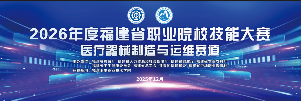12月19日至21日,2026年度福建省职业院校技能大赛医疗器械制造与运维赛道在我校顺利举办。本次赛事汇聚了全省12支参赛队伍、41名选手同台比拼,较技术、竞匠心、展风采。