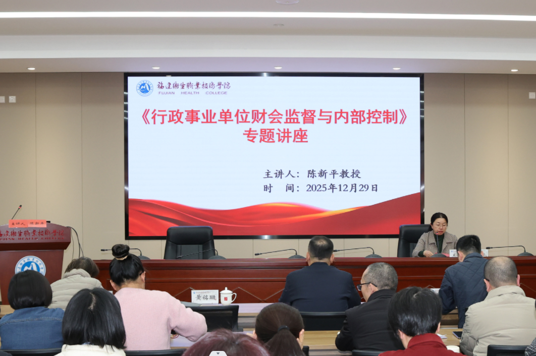 为进一步提升我校内控工作质量,强化教职工的内部控制意识,12月29日,我校邀请享受教授、研究员待遇正高三级会计师、福建省会计咨询专家、省政府会计准则制度咨询专家陈新平教授作《行政事业单位财会监督与内部控制》的专题讲座。校领导、中层干部及内部控制经办人员参加讲座,讲座由副校长黄铭珊主持。