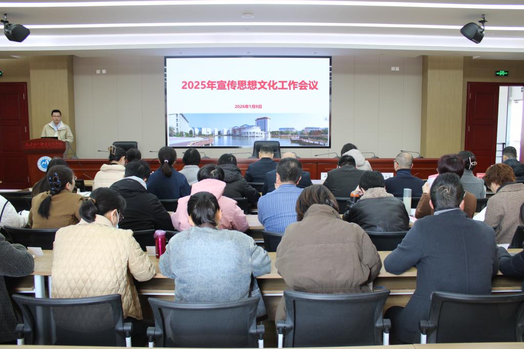 1月9日下午,我校在厚德楼六楼会议室召开年度宣传思想文化工作会议。校领导、中层正职(含主持工作)、各学院副书记、思政教师代表、辅导员代表、校史馆工作人员、宣传部工作人员参加会议。会议由校党委委员、宣传部部长宋维主持。