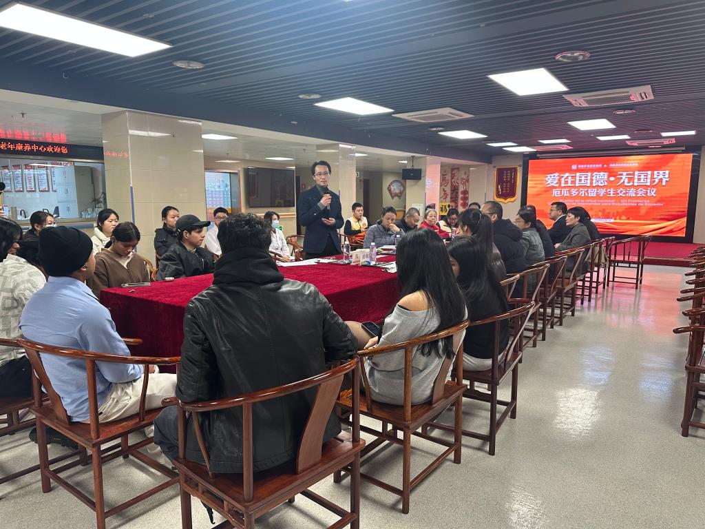 交流会上,国德养老服务集团总经理程珍代表院方致欢迎辞。她表示,此次合作不仅是养老服务的实践探索,更是中外人文交流的生动课堂。期待留学生们用青春视角为康养中心注入新活力。随后,福州市国德老年康养中心院长陈云系统介绍了中心“医养融合”特色服务体系及智慧养老创新模式,引发大家浓厚兴趣。
