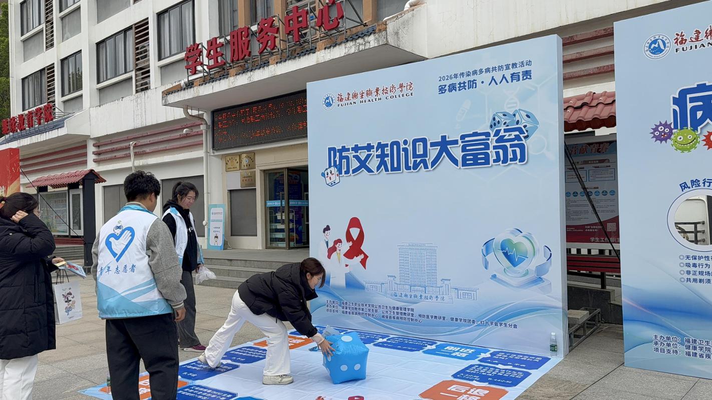 现场设置“防艾知识大富翁”“‘壶’光‘杀’气——结核菌歼灭战”“击倒HPV病毒——预防宫颈癌”等特色互动板块,同时开放“病毒大作战”“防艾知识祈福墙”等区域。其中,“防艾知识大富翁”游戏区成为师生关注的焦点。超大尺寸的游戏棋盘铺展于广场地面,棋盘上设置了通过掷骰子“前进一格”“后退一格”等趣味指令,同时嵌入了艾滋病传播途径、预防措施、暴露后预防等核心知识点问答。参与者在闯关过程中完成防艾知识答题,在轻松愉悦的氛围中掌握“无保护性行为是主要传播途径”“艾滋病暴露后72小时内可服用阻断药”等关键信息,真正实现了“玩中学、学中悟”。