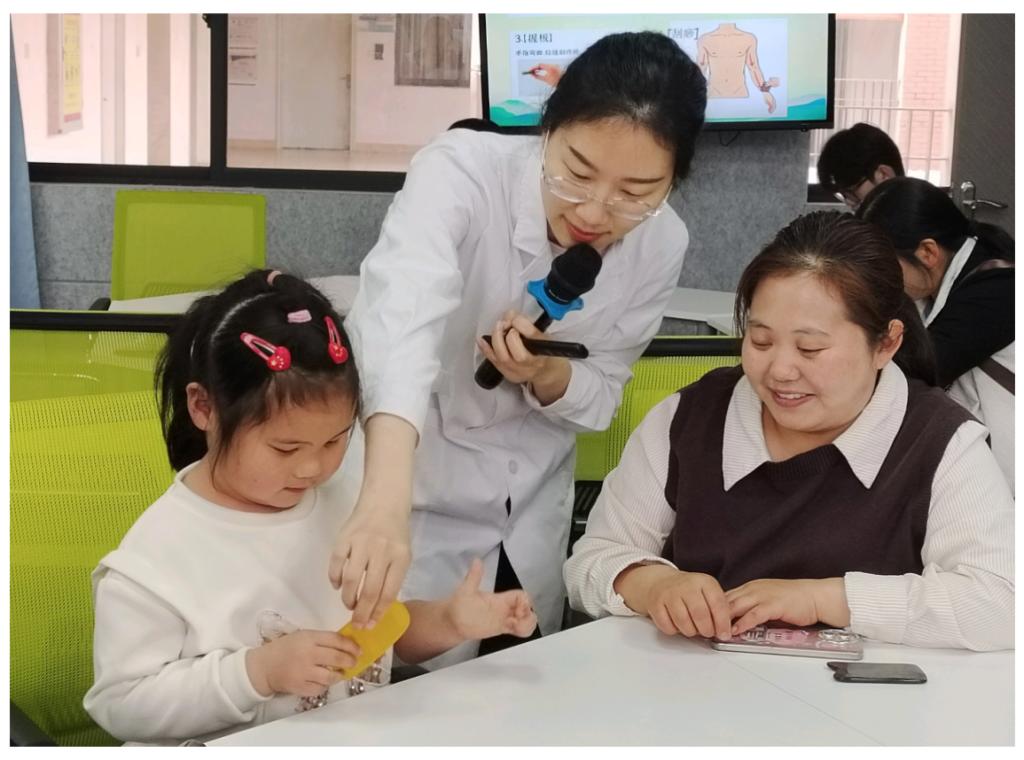中医技术课堂充满传统韵味。吴若云老师用童趣化语言,向孩子们介绍“望闻问切”四诊法,展示针灸、拔罐、推拿、刮痧等常见中医技艺。孩子们化身 “小小中医师”,亲手听诊心跳与呼吸音,沉浸式体验刮痧操作,在动手实践中感知身体奥秘,对传统医学的好奇与热爱油然而生。