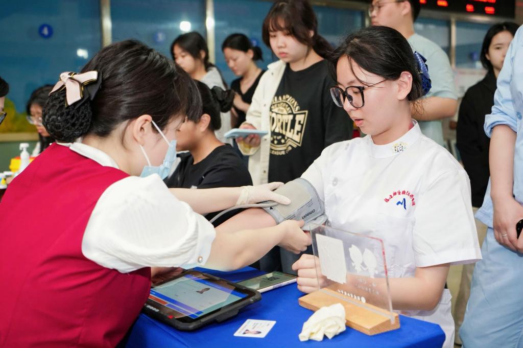 “这是我第一次献血,”护理学院2024级护理专业的黄妙锦身着白色护士服,背着书包匆匆从教室赶来,“作为医学生,从课堂上系统学习临床用血知识,到体验献血,我真切感受到每一滴热血对生命的重量,也更加体会到青年医者的责任与担当!”