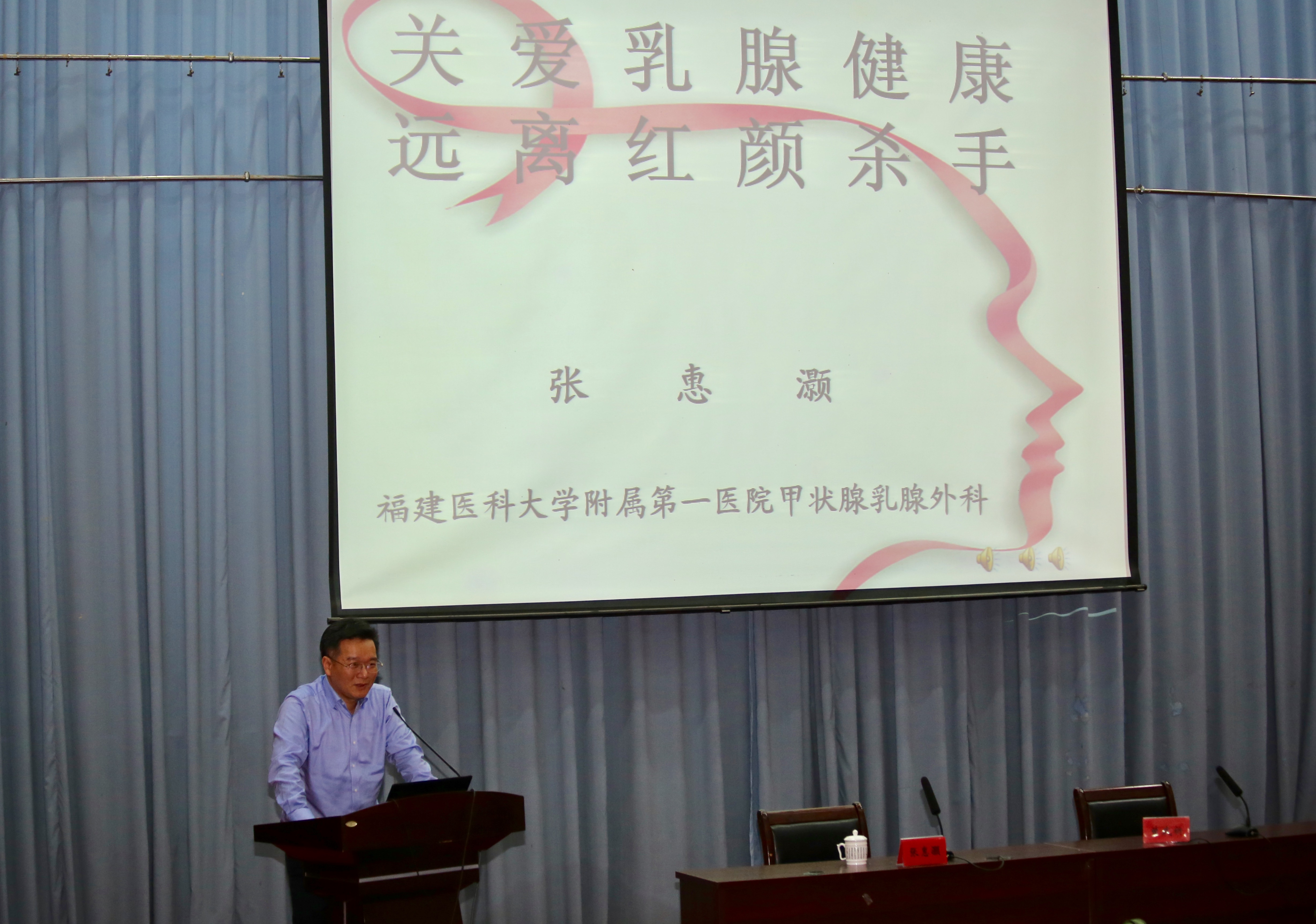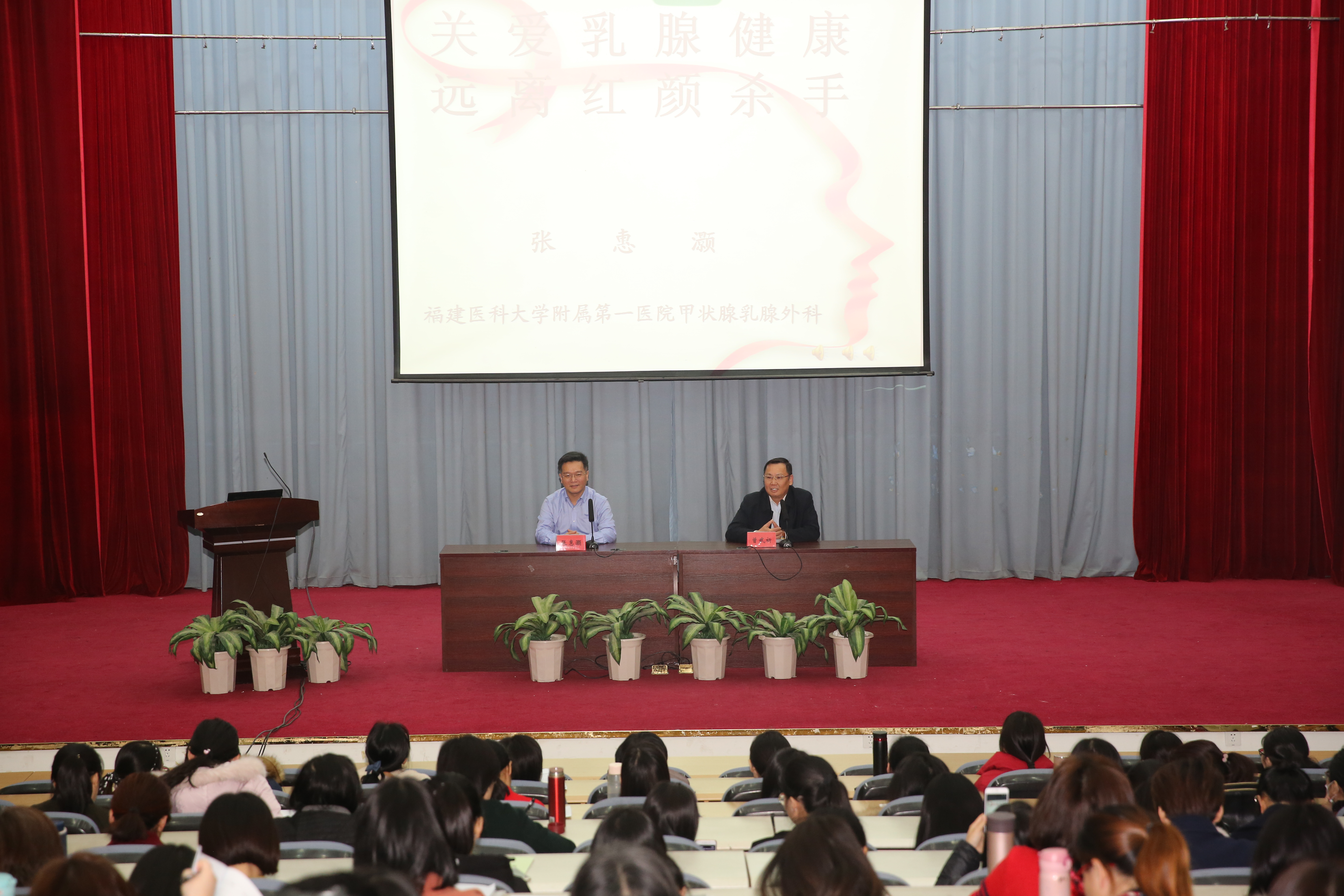3月8日下午,福建医科大学附一医院甲状腺乳腺外科张惠灏副主任应邀来校为我院全体女职工和部分学生作题为《呵护乳腺健康 远离红颜杀手》的“三八”节专题健康讲座。 张主任是我省知名的乳腺病专家,兼中国肿瘤防治联盟福建省乳腺癌专委会常委、母乳喂养与乳腺健康协会专委会秘书长等多项业务职务,还是中国女性肿瘤预防基金预防大使。张主任讲座内容丰富、形象生动、深入浅出,受到了师生热烈欢迎。