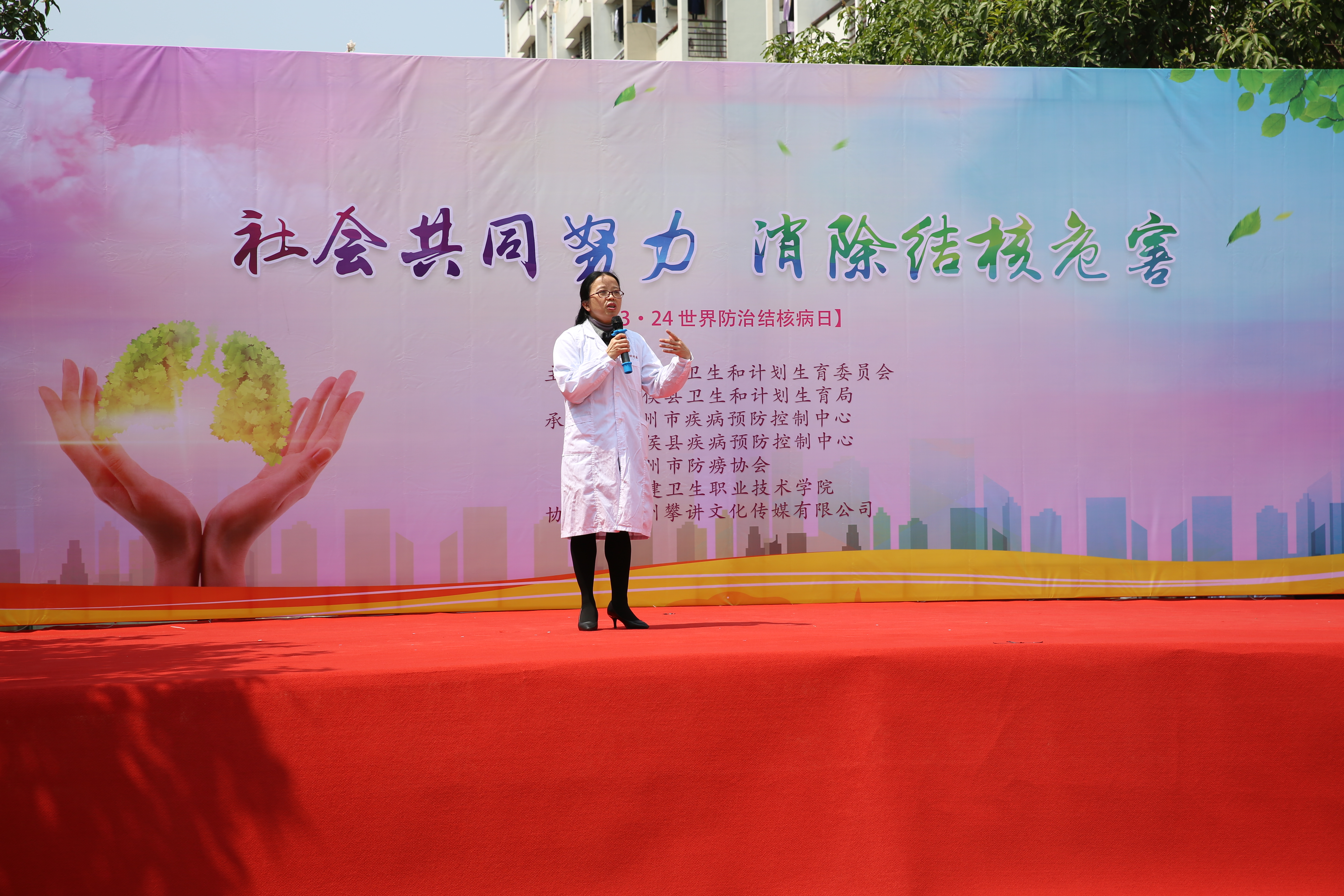 2017年3月24日是第22个“世界防治结核病日”,为进一步提高全院师生对结核病的防治意识,动员全体师生行动起来共同预防和控制结核病,推进健康校园建设,院团委联合福州市卫计委、闽侯县卫计委、福州市疾控中心、闽侯县疾控中心、福州电视台在明湖餐厅前举办2017年“世界防治结核病日”宣传活动。福州市卫计委钟平沂研究员、学院党委曾武祈书记、苏友新院长、魏立娜副院长亲临现场为活动助力。