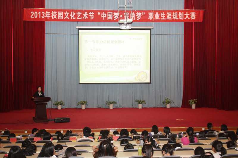 为了在全体学生中进一步宣传“中国梦”主题教育活动,增进在校学生对职业和就业的认识,5月28日我院在学术厅举办了“2013年校园文化艺术节‘中国梦·我的梦’职业生涯规划大赛”。学院魏立娜副院长以及学生工作处、思政教研部、院团委和相关系部领导出席,各系辅导员和400余名学生共同观看了比赛。