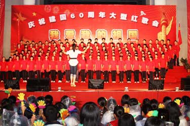 9月29日晚,由院党委主办、党委工作部、团委、工会共同承办的“我爱我的祖国——庆祝中华人民共和国成立60周年师生大型红歌会”在学院图书馆前广场隆重举行,卫生厅枫叶合唱团、附属医院、73919部队和我院师生组成的13支代表队参加了演出,省卫生厅陈秋立副厅长,原卫生厅崔华副厅长、人事处黄俊章处长,附属医院季晓林院长、林建团书记、共建部队汪政委、政治部陈主任及学院党委严肃书记、林春明院长、陈雄副书记、廖伟坚副院长、黄开良副院长等领导和学院师生3000多人欢聚一堂,共庆祖国60华诞。 红歌会在各方块队伍拉歌声拉开帷幕,省卫生厅枫叶合唱团雄健洪亮的歌声中一曲红色经典歌曲大联唱《希望》,唱出了党在新中国成长历程中不可磨灭的功勋,附属医院歌伴舞《走进西藏》让人领略了藏族姑娘的优美舞姿、附属医院大合唱《祝福祖国》和《山丹丹花开红艳艳》,共建部队演唱的《爱国奉献歌》和《工化兵之歌》,院直机关、公共基础部、药学系、护理系、检验影像系、医学基础部临床医学系合唱队演唱的《爱我中华》、《没有共产党就没有新中国》、《团结就是力量》等经典红色歌曲在舞台上此起彼伏,师生们在一段段熟悉激昂的主旋律中,一起回到那激情燃烧的岁月,在红歌世界中体味感动与爱国激情。 近2个小时的合唱比赛气氛热烈、欢声迭起,全体教职工齐上阵,师生同台传唱红色歌曲,不断舞动的红旗让会场成了红色的海洋。晚会在全体放声高歌《歌唱祖国》的雄壮豪迈的歌声中圆满落幕。 这台红歌会以喜庆、隆重、昂扬、热烈为基调,以歌声、掌声、表演为烘托,充分表示了全院师生对伟大祖国60华诞的喜庆之情。(党委工作部 团委 工会)