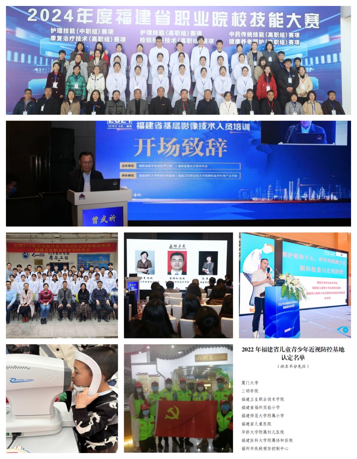 依托专业特色,服务人民健康。依托联影产业学院举办基层影像技术人员培训班4期,累计培训近1500人次。入选首批“福建省儿童青少年近视防控基地”,与企业医院合作举办福建省儿童青少年眼保健技术培训班,组织师生进社区、小学等开展近视防控筛查与科普活动,为青少年视力健康护航。承办3场省级专业竞赛,开展职业技能鉴定1700余次,开展职教周活动,进火车站、社区、学校等开展义诊和设备维修等志愿活动。