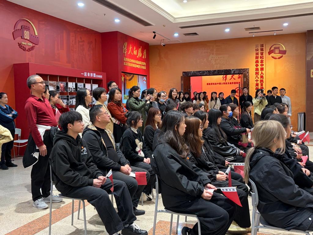 师生们首先观看福建警察学院带来的“薪火相传・致敬英雄”沉浸式演出。演出以快板、舞蹈、朗诵等形式,再现永安文化抗战、侨眷支援前线、华侨归国参战等福建军民抗战故事。其中,朗诵《侨批里的家国》结合影像资料,生动诠释“国若不存,家何能安”的家国情怀,为观展铺垫情感基础。