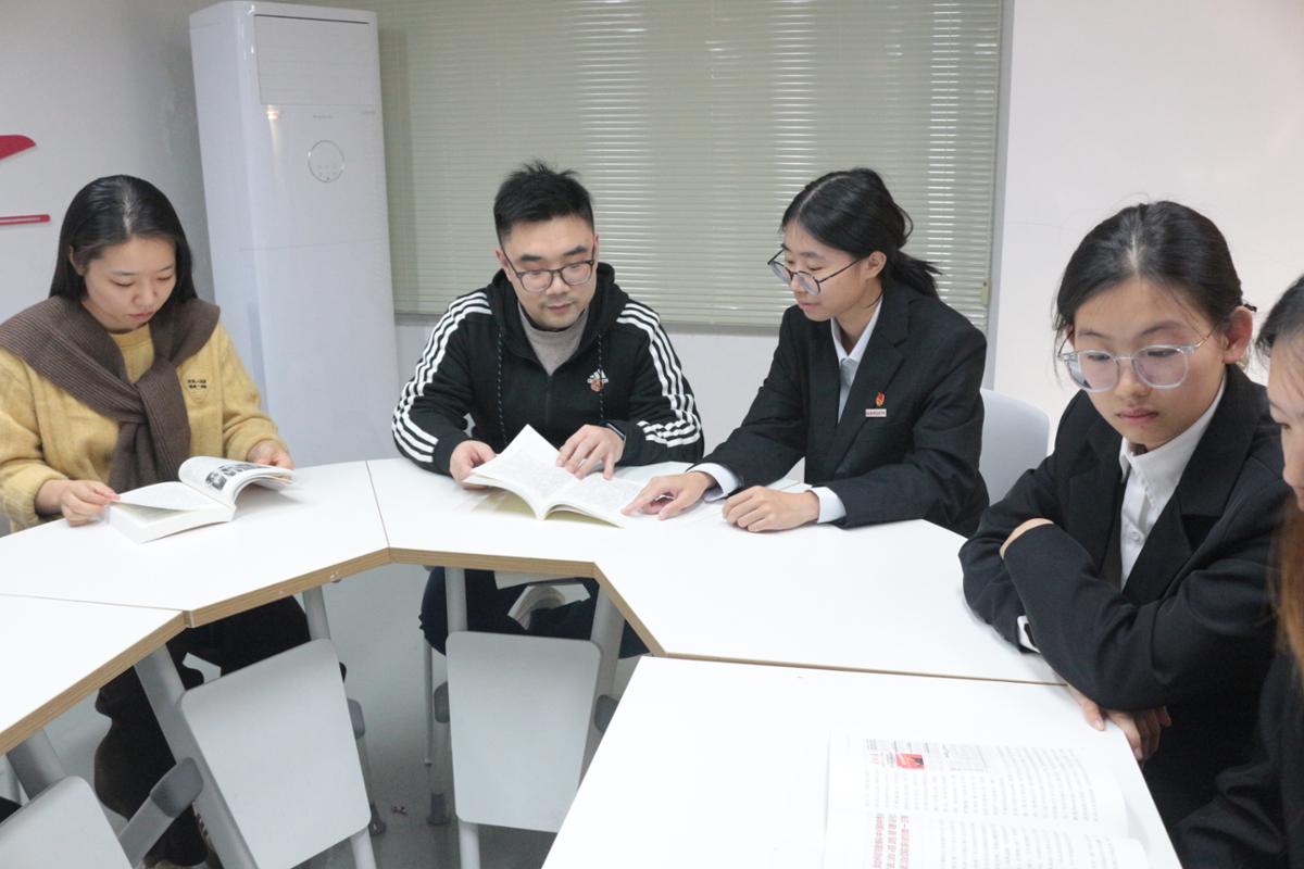 围读环节,团学骨干们以书为友、以读为桥,认真学习党的先进理论,在交流分享中深化理论认知,从创新理论的发展脉络到实践要求,从思想引领的方法路径到责任担当,在互学互鉴中凝聚共识,把理论养分转化为策划团日活动、推进学风建设的具体思路,以青春之力践行党的号召、引领青年前行。