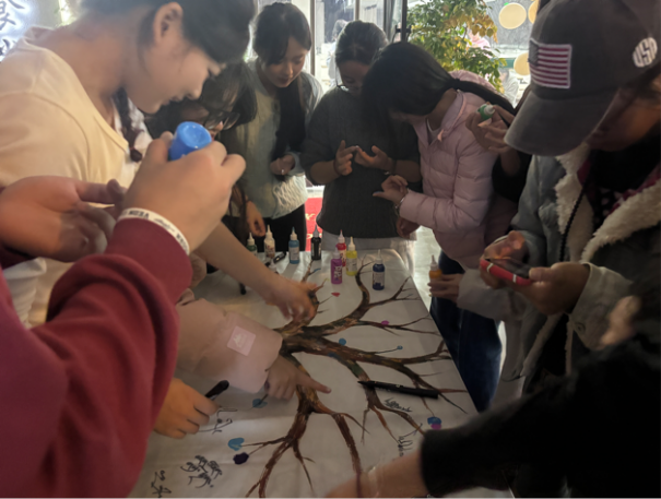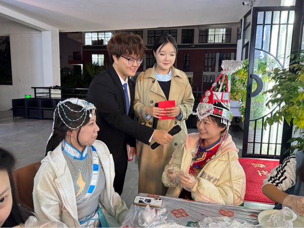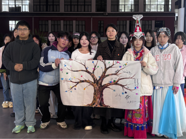 活动尾声,一幅民族团结“生命树”纪念布缓缓展开。师生们蘸取五彩颜料,按下专属指印、签下姓名,少数民族同学还用本民族文字留下珍贵印记,象征着各民族师生像石榴籽一样紧紧相拥。全体合影留念,将这份冬日暖情定格永恒。