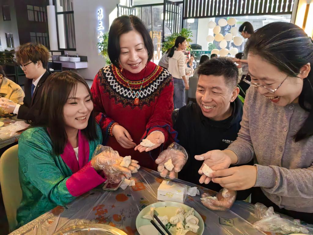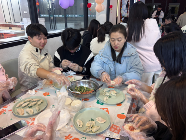 包饺子环节堪称“暖心重头戏”。40名少数民族学生分成8个小组,新鲜食材整齐陈列。有经验的同学化身“小导师”,手把手传授包馅、捏褶技巧;教师主动融入,创意包出花朵、小动物等特色饺子,现场欢声笑语不断,尽显“民族大家庭”的温暖。