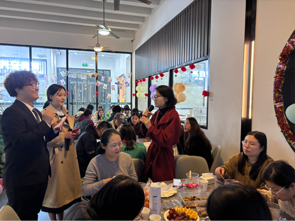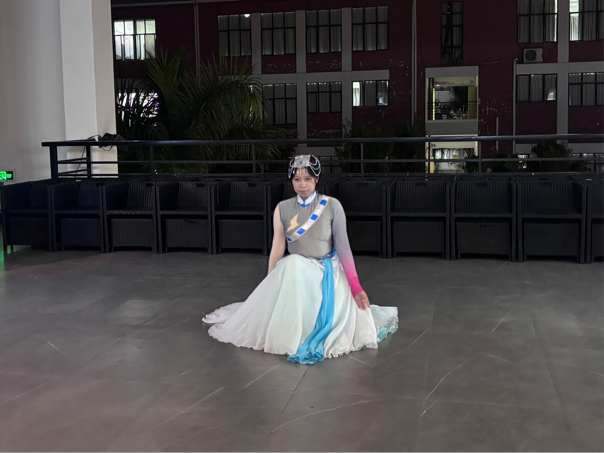 趣味互动与文化展演点燃全场热情。同学分享了本民族冬至习俗——汉族祭祖传统、少数民族特色美食等内容,让大家沉浸式感受多元文化魅力。少数民族同学带来的悠扬歌曲、灵动舞蹈,赢得阵阵掌声。“你比我猜”游戏中,同学们默契配合、欢乐互动。党史与民族知识抢答环节,大家踊跃参与,在答题中深化民族团结认知、巩固理论学习成果。