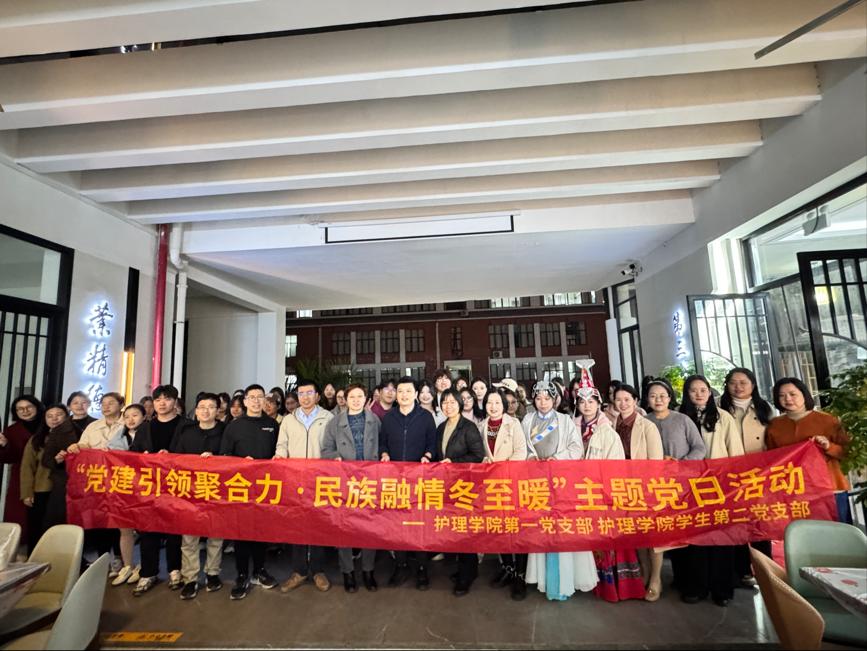 冬意渐浓,岁寒情深。为深入贯彻落实党的二十届四中全会精神,以铸牢中华民族共同体意识为核心,增进各民族师生之间的情感交流与文化认同,巩固和发展最广泛的爱国统一战线,12月18日,护理学院学生第二党支部联合护理学院第一党支部举办“党建引领聚合力·民族融情冬至暖”主题党日活动。副校长周雄,组织统战部、护理学院相关领导以及各党支部书记、教研室主任等师生代表与少数民族学生代表齐聚一堂,以劳动践初心,以美食聚情谊,让这个冬至既有传统文化的厚度,更有民族团结的温度。