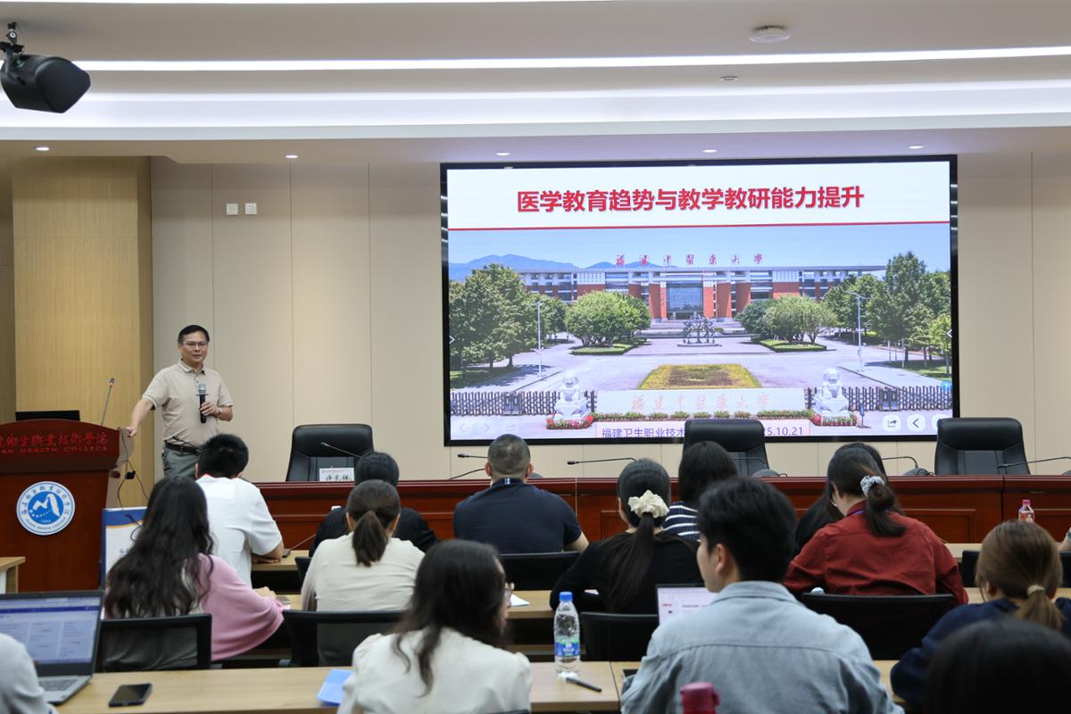 本次培训邀请福建中医药大学教师教学发展中心主任许克祥教授开展题为《医学教育趋势与教学教研能力提升》的专题讲座。讲座立足医学教育发展前沿,紧密结合教学实际,深入浅出地阐述了教学教研能力提升路径,有效拓展了新教师的教育视野。
