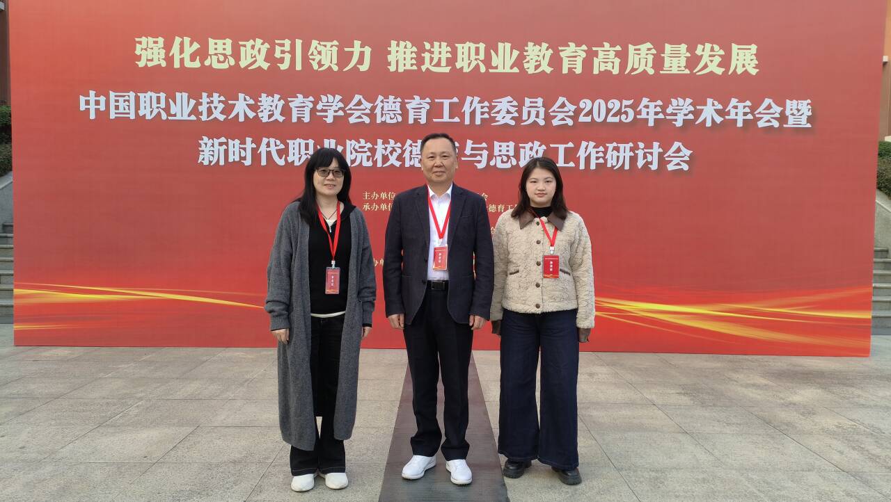 11月25日至26日,中国职业技术教育学会德育工作委员会2025年学术年会暨新时代职业院校德育与思政工作研讨会在成都举行,我校党委书记曾武祈、马克思主义学院负责人和思政课教师代表参加会议。
