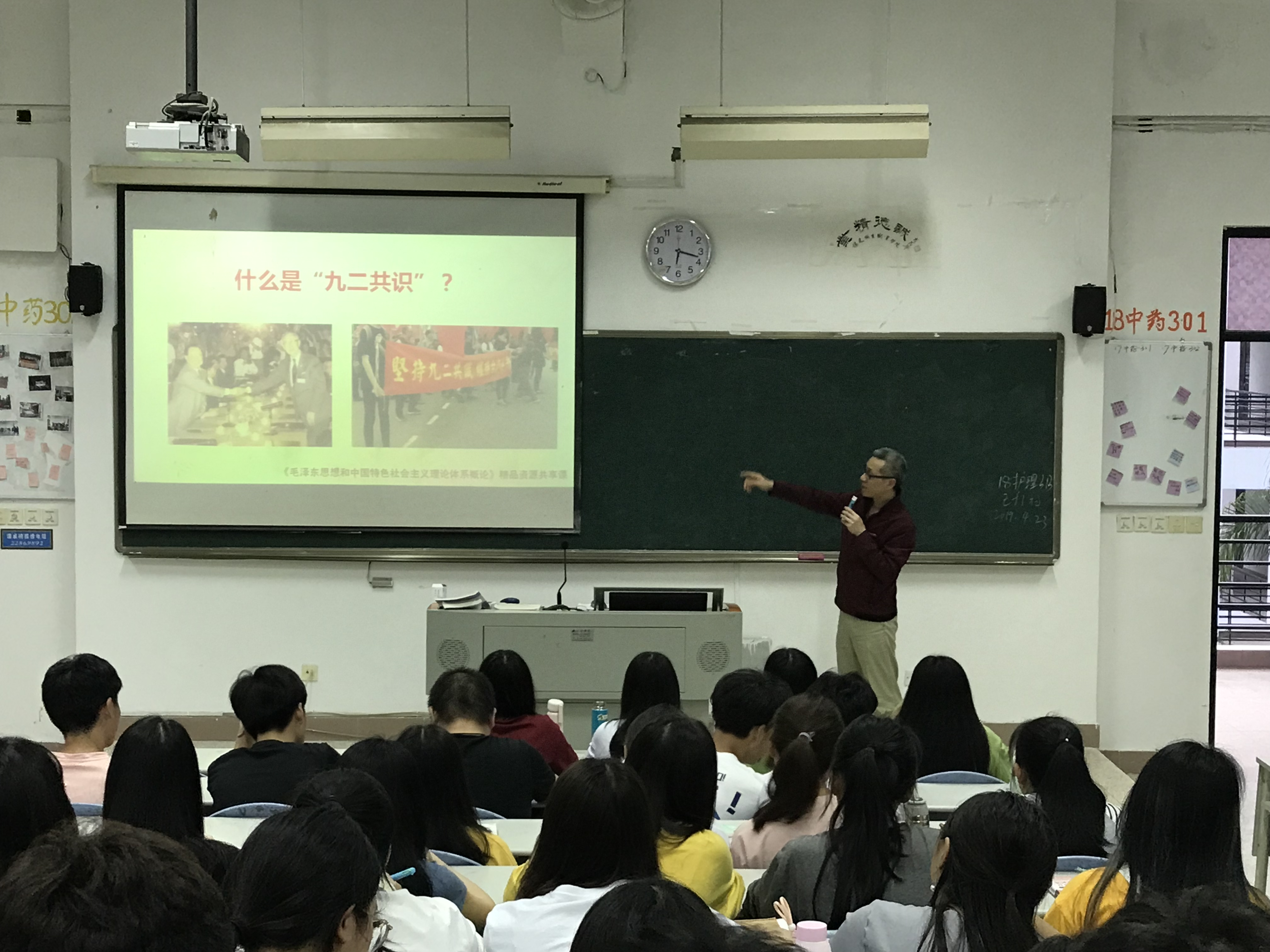 本次公开课以《毛泽东思想和中国特色社会主义理论体系概论》第五章邓小平理论第二节邓小平理论的基本问题和主要内容中的“一国两制”为主题。胡老师从坚持一个中国原则、两制并存、高度自治等方面对“和平统一、一国两制”构想的基本内容作深入解读。在教学过程中,胡老师借助信息化教学平台,恰当运用目标教学法、启发式教学法、案例教学等多种教学手段和教学方法,深入浅出地剖析“一国两制”的科学内涵。本次公开课教学主要有几个亮点:一是“思政课程”与“课程思政”融会贯通,教学中贯穿习近平总书记关于“一国两制”的重要论述,注意培育大学生的爱国主义情感,增强对“一国两制”的认同感和自信心;二是信息化教学鲜明,教学中穿插使用视频、歌曲、新闻图片、得实APP等资源或者软件,有利于学生更好地理解和掌握“一国两制”的基本内容;三是重视大学生学习能力的培养,特别注重与学生之间的互动,倡导研究型教学,有意识引导大学生开展课外自主性学习,培育思辨能力和团队合作精神。